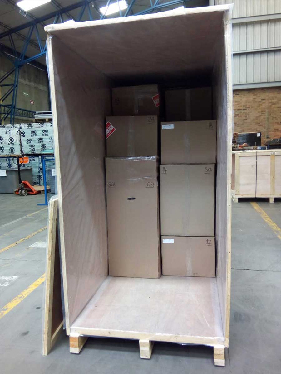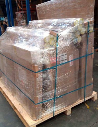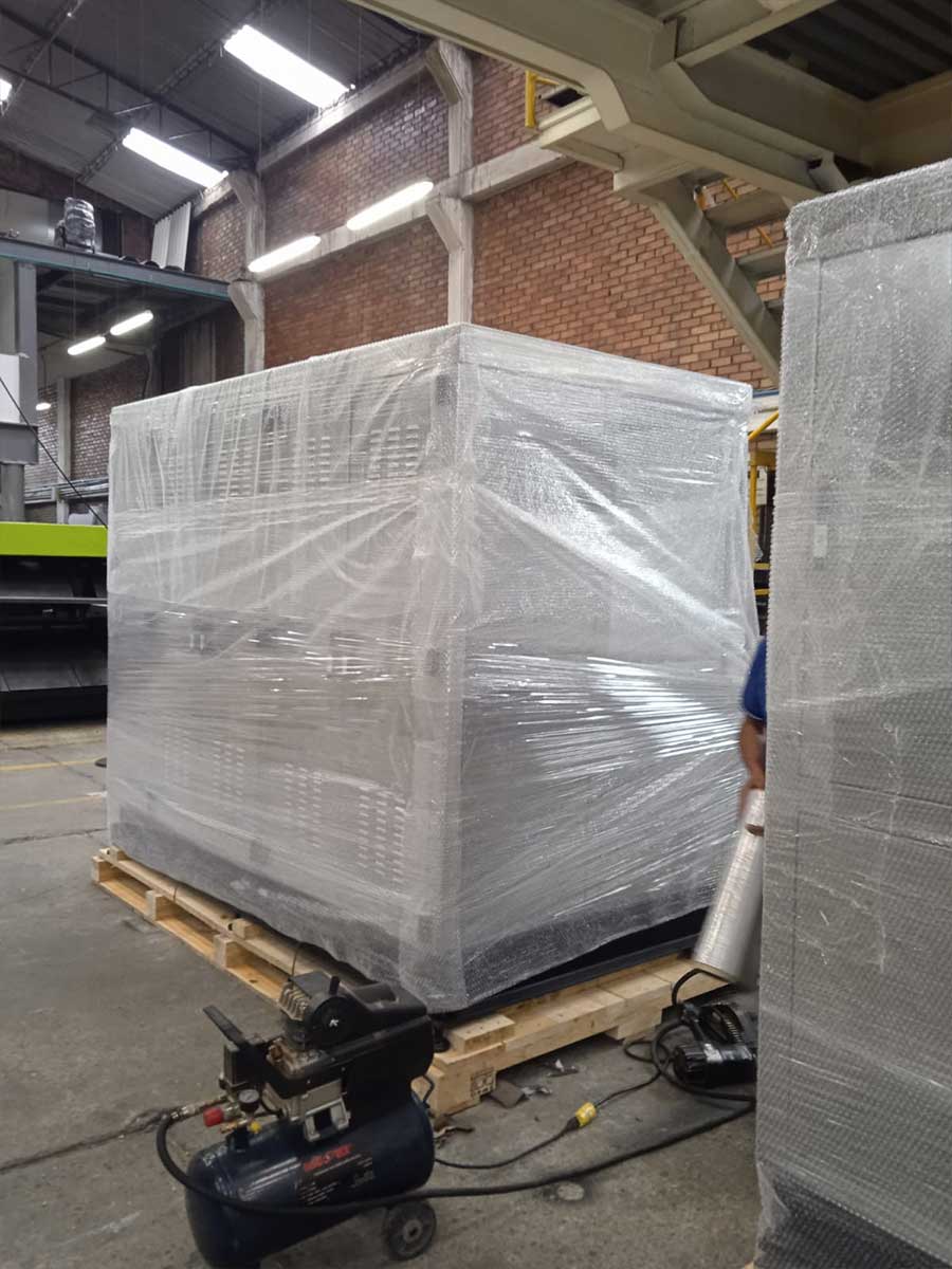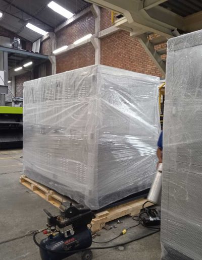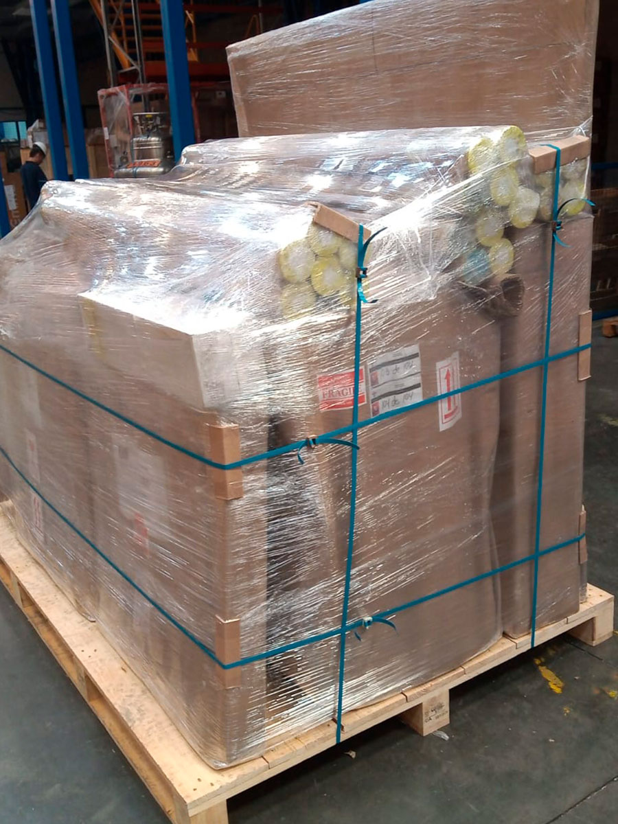 El embalaje y paletizado es usado para proteger la mercancía, empleamos guacales, estibas, esquineros cartón, zuncho plástico o metálico, vinipel, plástico burbuja, entre otros, con el fin de prevenir daños o fisuras y asegurar que la mercancía o equipos conserven su integridad y lleguen en perfecto estado a su destino final.