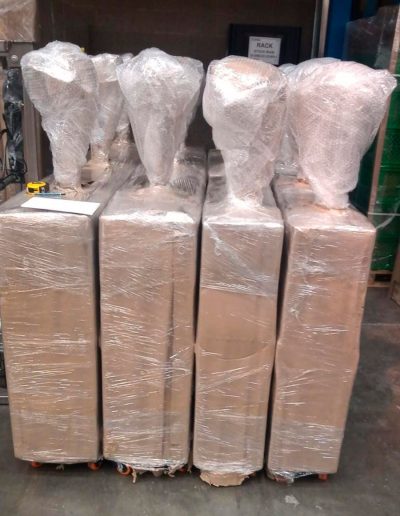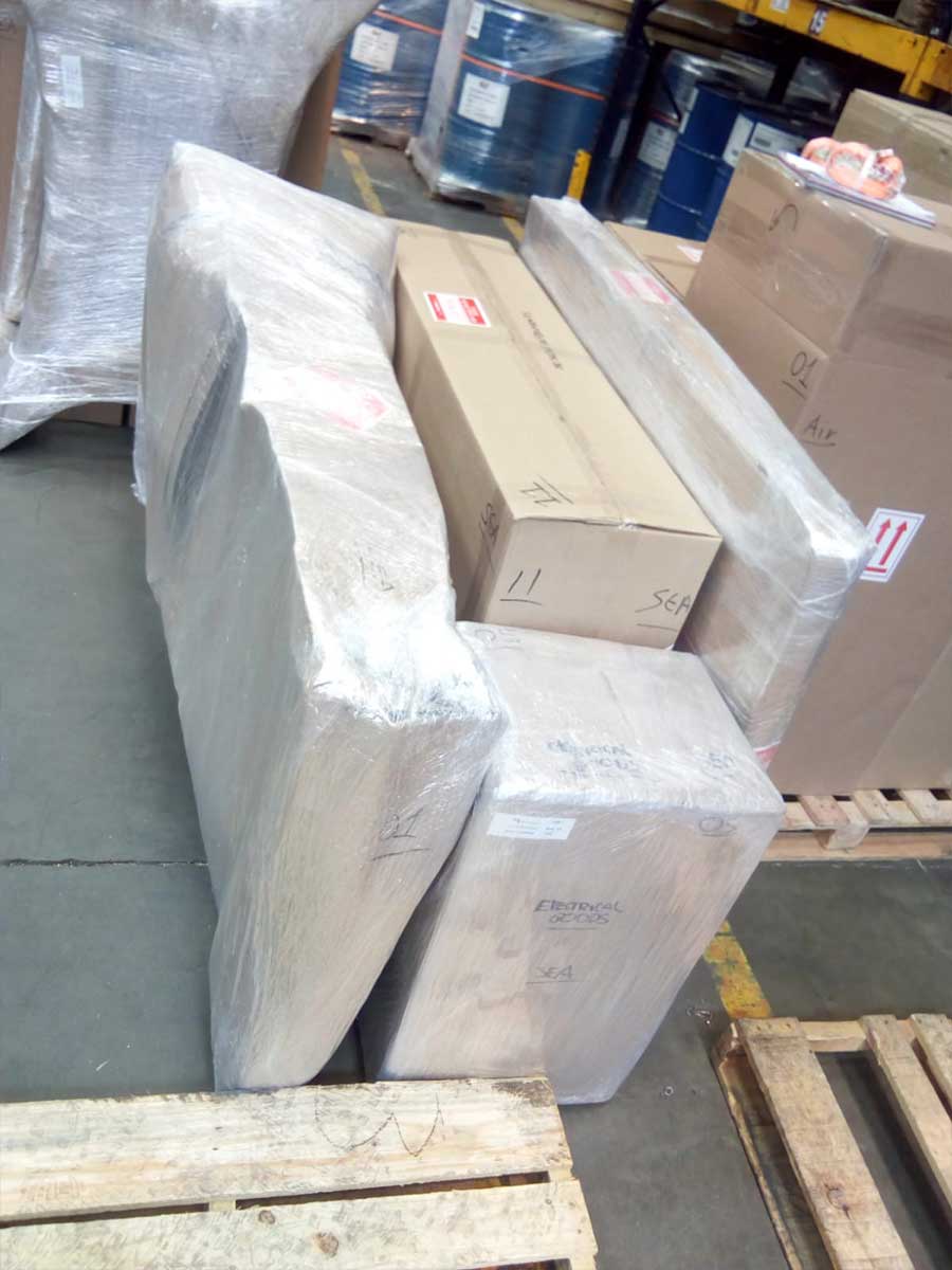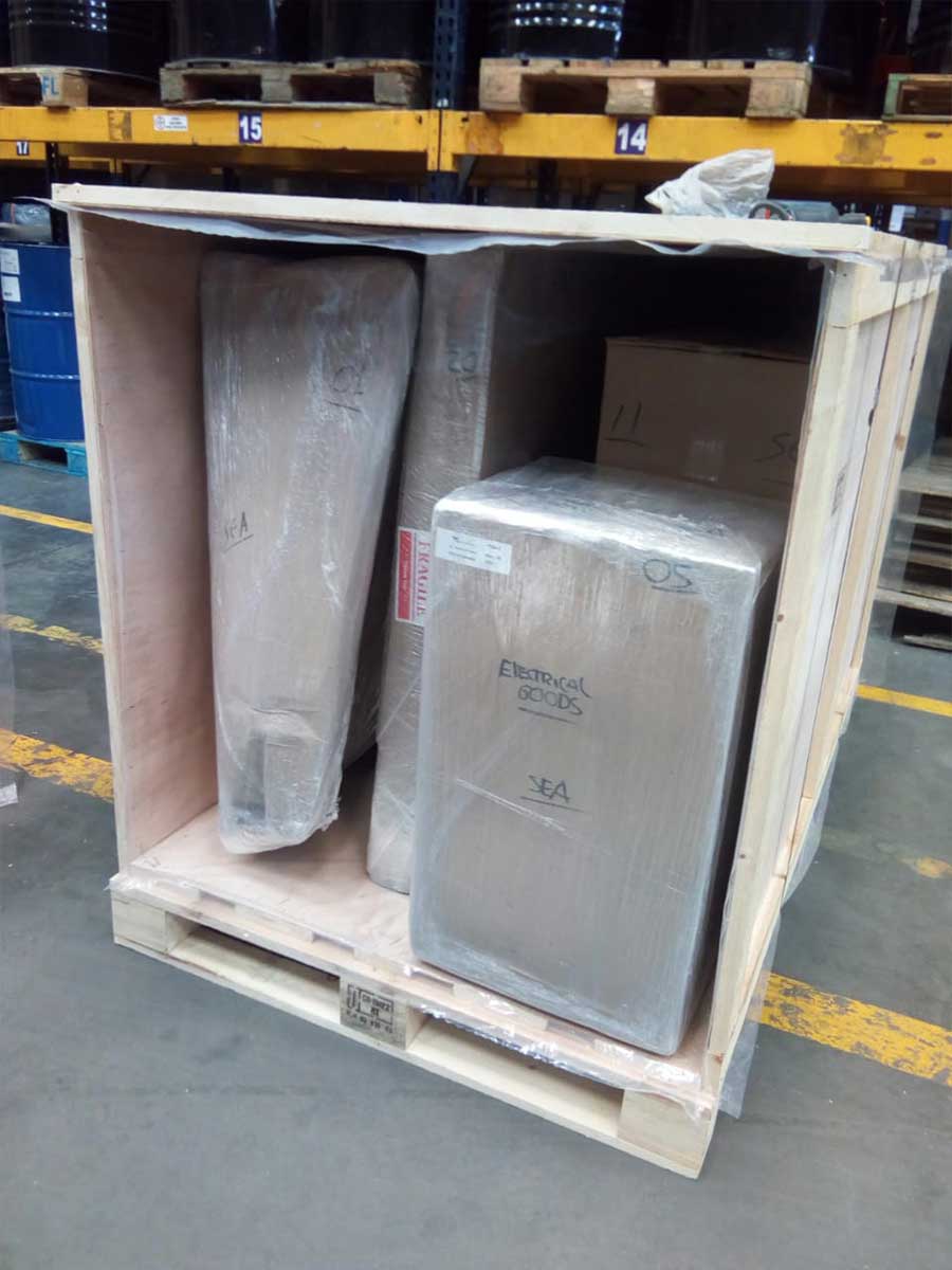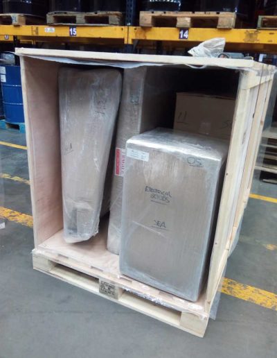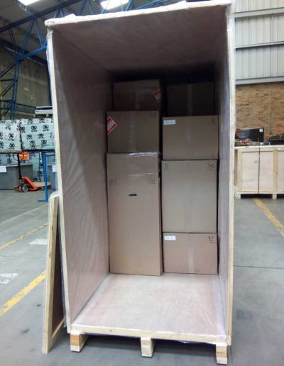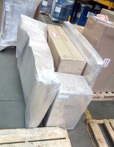 El embalaje y paletizado es usado para proteger la mercancía, empleamos guacales, estibas, esquineros cartón, zuncho plástico o metálico, vinipel, plástico burbuja, entre otros, con el fin de prevenir daños o fisuras y asegurar que la mercancía o equipos conserven su integridad y lleguen en perfecto estado a su destino final.